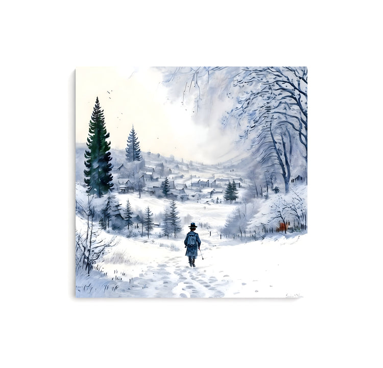 La collection "Vallée Hivernale" est une série d'oeuvres d'art représentant un village isolé dans une vallée subissant la dureté de l'hiver. La neige recouvrant la totalité de l'environnement cherche à créer une ambiance rude en nous rappelant la puissance des éléments naturels. La poésie se crée par l'humilité que cette collection cherche à donner aux hommes. Une beauté et un symbole de pureté qui peut détruire tout fondement de notre confort habituel tout en nous émerveillant par le bouleversement qu'il crée sur notre paysage habituel. Cette collection se mariera parfaitement avec des tons froids et particulièrement des tons de gris au bleu. Elle se mariera également à des décors boisés. Elle est davantage réservée aux pièces de nuit et aux lieux de passage comme le haut d'un escalier, un couloir mais aussi une chambre. Elle créera une profondeur visuelle qui agrandira la pièce dans laquelle elle est placée.