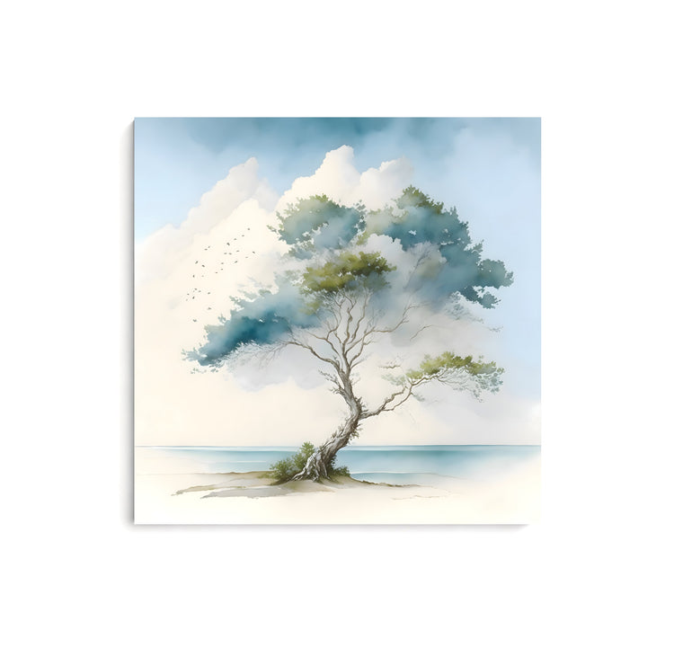 The "Tree Portraits" collection is a bewitching series of works of art that highlights the majesty and power of solitary trees, standing proudly in the middle of various scenes. Each piece in this collection will transport you to a world of contemplation and reflection, where the tree becomes the symbol of quiet strength. These works of art highlight the sturdy roots of the tree, reaching deep into the earth to draw strength and stability. You will feel connected to nature and its ability to ground you in the present. You will find beauty in solitude. The soothing colors and serenity of this collection will allow you to immerse yourself in tranquility and meditation through observation and contemplation. Through this series of illustrations, you will be able to follow the seasonal changes of solitary trees, from their verdant leaves in summer to their snowy branches in winter. Each scene aims to take you into an eternal cycle of renewal and transformation. The collection invites you to reconnect with your inner self, find peace and regain a sense of mental clarity. This collection will blend with a wide variety of interiors. White interiors are preferred since they will highlight and bring out the masterful portrait of each of the trees. The collection will also go perfectly with wooded and/or vegetated interiors. It is also possible to combine it with pieces of warm and cold colors depending on the overall color of the painting. The collection can go in all rooms, night and day space. Only avoid placing it frontally at the entrance door in a hall since the work will have too strong a presence for this transitional space.